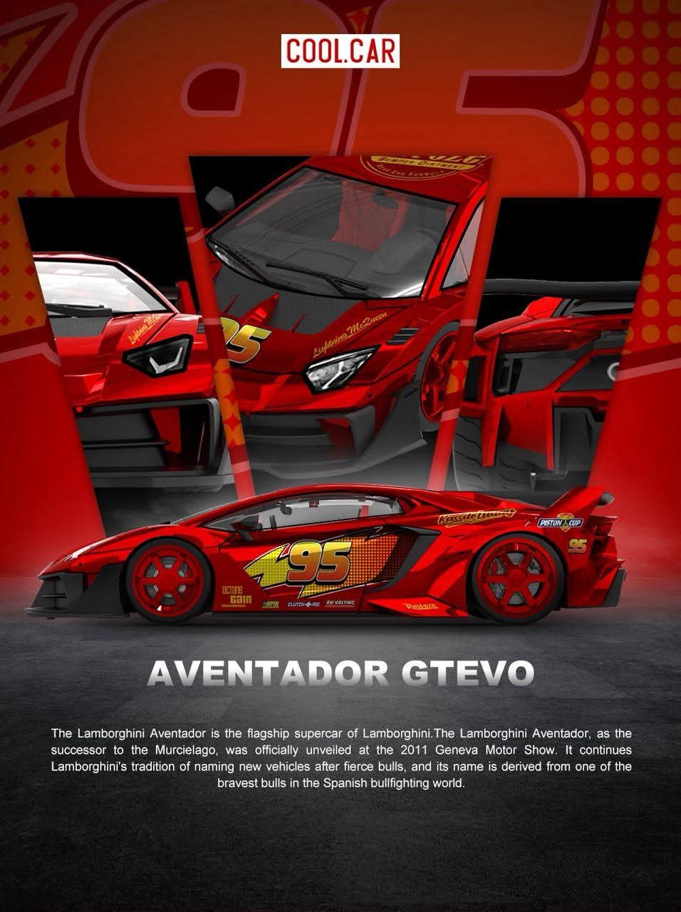Item included in the package– 1 Qty of Cool Car Lamborghini GTEVO Lightning McQueen Metallic Red.