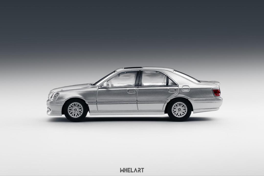 This Crown model features front wheel steering. All chrome trim and electroplated strips are individually disassembled parts, showcasing complex craftsmanship. The model has an alloy chassis and metallic paint.